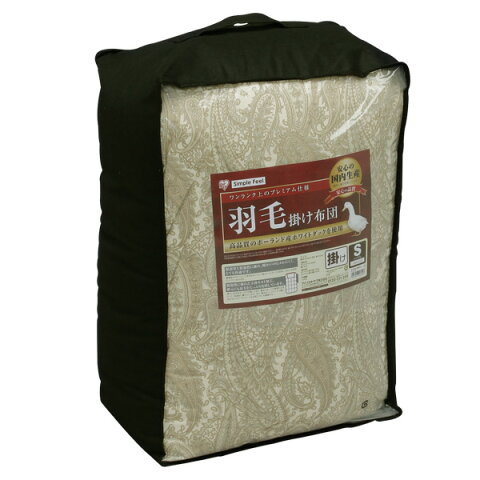 ●シングル ●商品サイズ(約):幅150×長さ210cm ※キルティング製(許容範囲+5%、-3%) ●材質 ・側生地:ポリエステル85%、綿15% ・詰めもの:ポーランド産羽毛70%、ポーランド産羽根30% ●目付け(約):90g/m2 ●カバー取り付け紐:7個 ●詰めもの重量(約):1.2kg ●原産国:日本 【お手入れ方法】 ※部分的に側地が汚れたら、すぐつまみ洗いし十分乾燥してください。