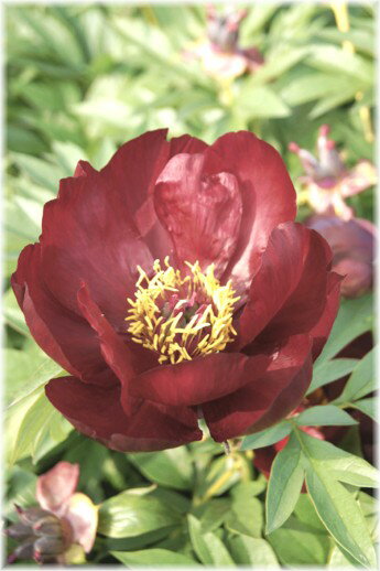 「シャクヤク スカーレットヘブン」は、イトウハイブリッドにおいては珍しいダークレッドのシングル咲き。