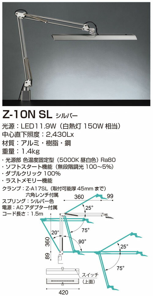 【あす楽】【クーポンで100円値引き】【送料無料】山田照明 Zライト LEDデスクライト Z-Light シルバー Z-10NSL
