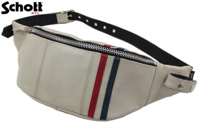 Schott(ショット)CLASSIC RACER BODY BAG クラシックレーサー ボディーバッグ/クラシックレーサー ウエストバッグ WHITE×TRICOLOR(ホワイト×トリコロールライン)/3189016 注)レザー表面には加工が施されており、微小な傷、色落ち、USED感がございます。