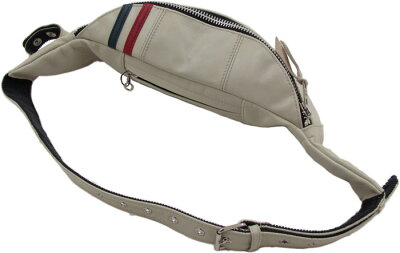 Schott/ショット CLASSIC RACER BODY BAG クラシックレーサー ボディーバッグ、クラシックレーサー ウエストバッグ、レザー バナナバッグ、ヒップバッグ WHITE×TRICOLOR(ホワイト×トリコロールライン)/3189016
