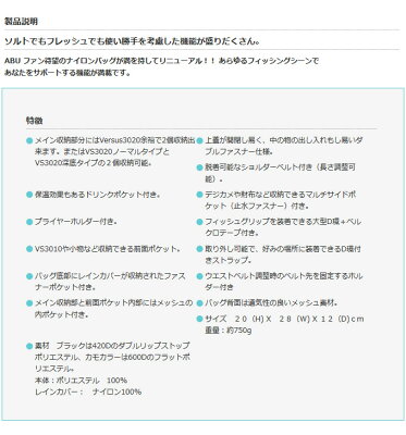 ・本体:ポリエステル 100% ・レインカバー: ナイロン100% 関連商品 アブ ガルシア バッグ 商品一覧 注意事項 商品名に『取り寄せ商品』と記載しております商品は発送までに1週間以上お時間をいただく場合がございます。